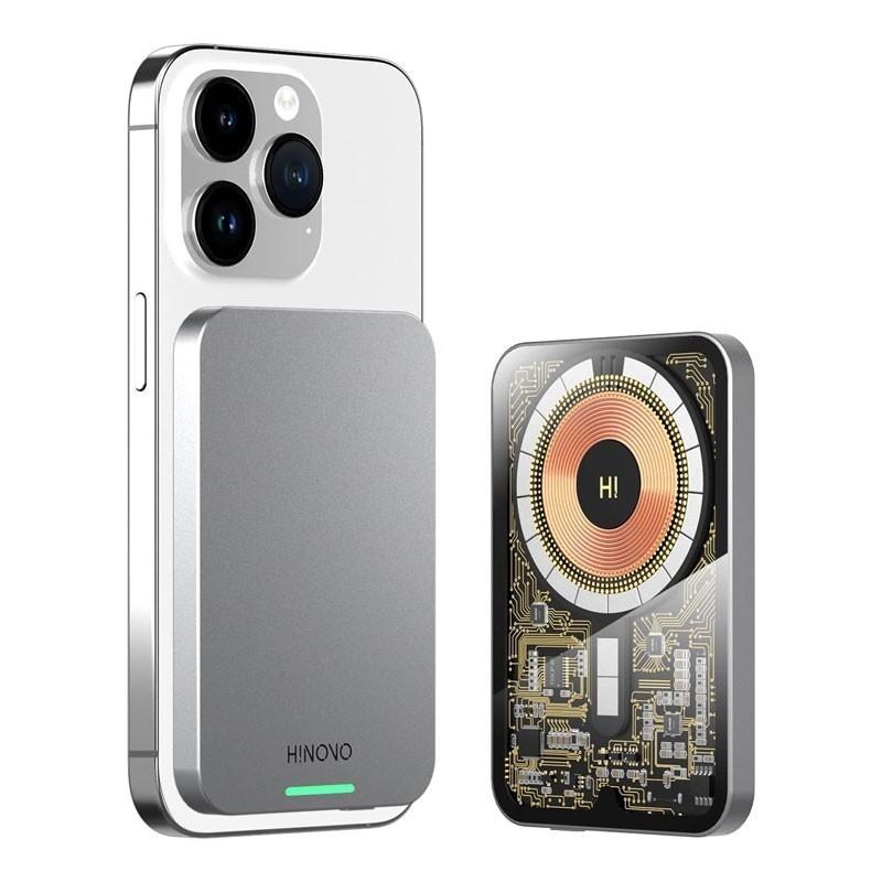 Baterie externa pentru iPhone si Android HINOVO MB1-5000X, 5000mAh, Cyberpunk Style, Incarcare Wireless, functie MagSafe - Hinov