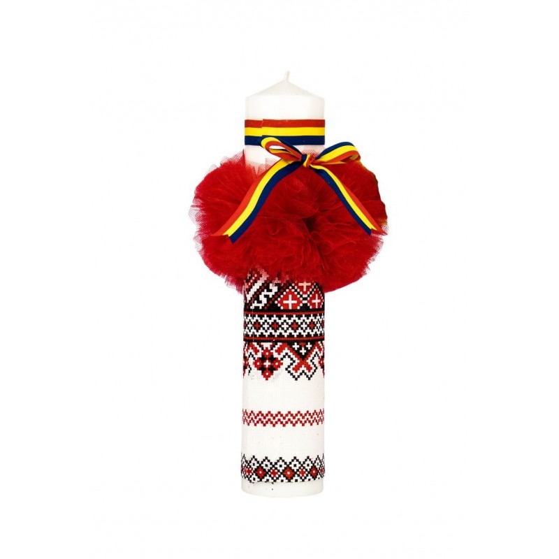 Lumanare botez traditionala Tricolor cu glob rosu, en-gros